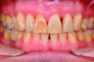 Fig.15 : Vue clinique en 2020 (plus de 32 ans de suivi). Contrôle de plaque moyennement efficace. Il reste indiqué de suivre le patient au moins tous les six mois.